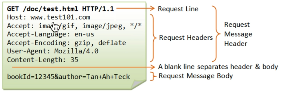 ㄴ서버 쪽으로 전송해야되는 정보가 있다면 Reqeust Message Body 에 담는데 Header 와 Body 사이에는 Blank line 을 두어서 구분한다고 약속되어 있다.