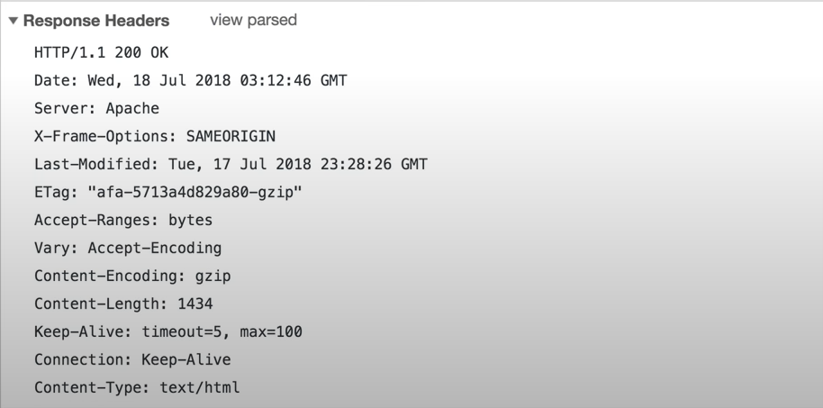 그 이후에는 Header 영역인데 content-type, content-length, content-encoding, last-modified 등의 정보로 구성되어 있고 Blank Line 을 기준으로 Body 영역도 존재한다.