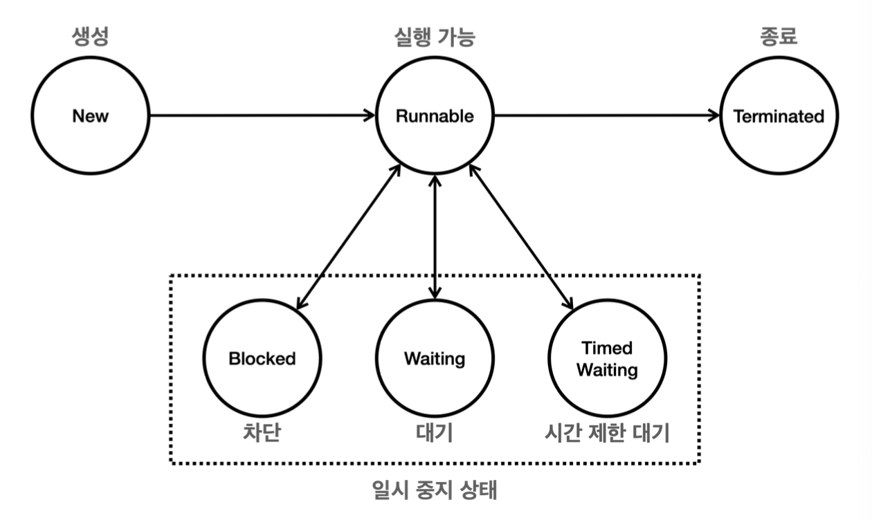3) Blocked / Waiting / Timed Waiting → Runnable : 스레드가 락을 얻거나 기다림이 완료되면 Runnable 상태로 돌아간다.